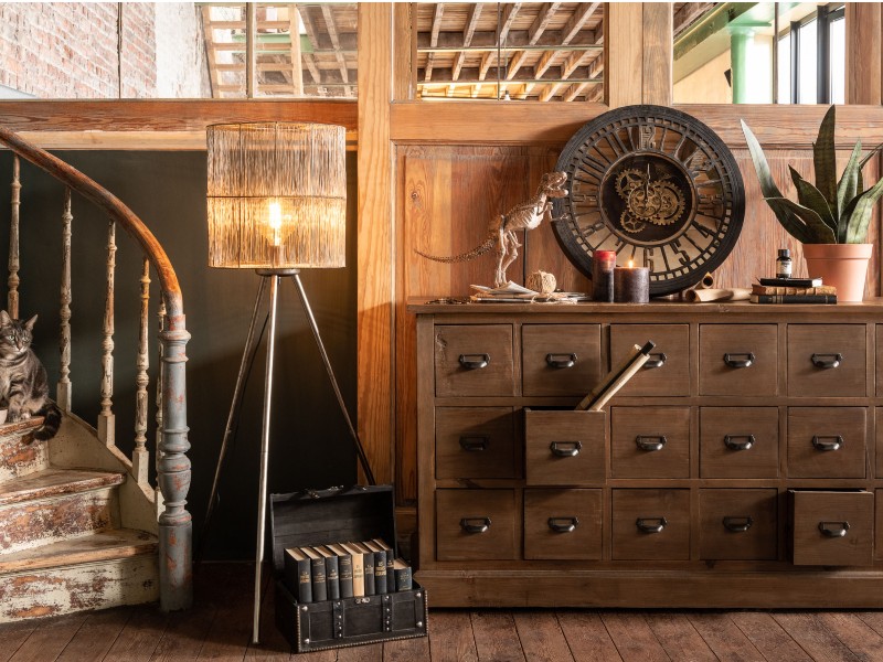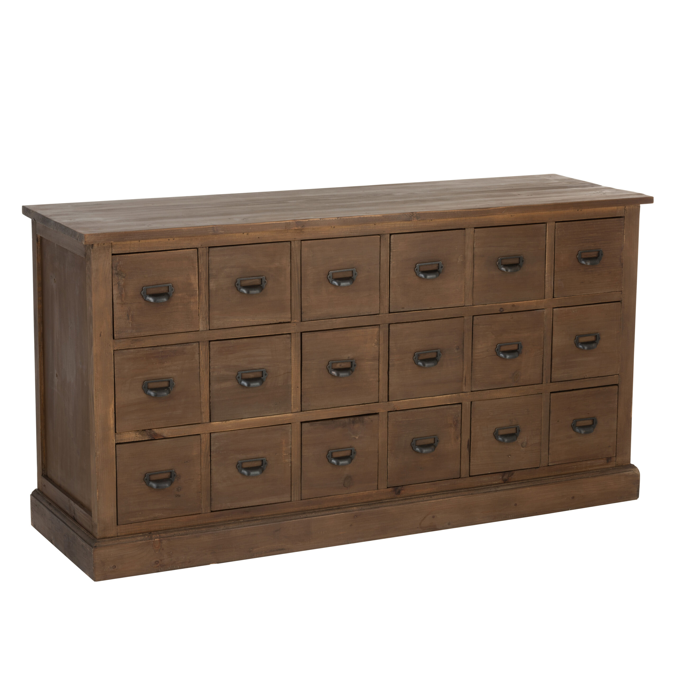 Pour des rangements XXL dans votre d?co n?o vintage, cette commode en bois marron sera?id?ale ! ?l?gante et robuste, ses lignes intemporelles et ses 18 tiroirs seront un espace de rangement et de classement optimal pour votre linge et vos affaires. Habillez-la avec une plante et une grande horloge industrielle pour un look totalement assum? !